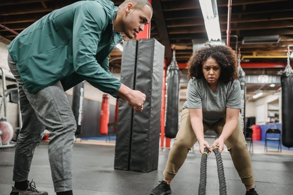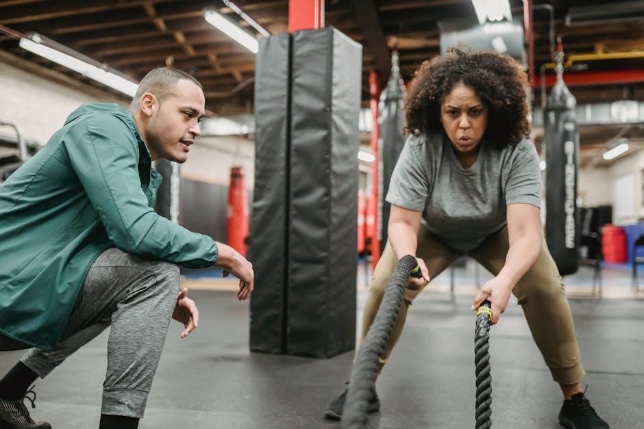 Motivation and consistency are essential for achieving long-term success in functional strength training․ Setting realistic goals and celebrating small achievements helps maintain enthusiasm․ Tracking progress through metrics like strength gains or improved performance also boosts motivation․ Creating a structured routine and incorporating variety in workouts can prevent boredom and keep individuals engaged․ Surrounding oneself with a supportive community or trainer further enhances commitment․ Consistency is key to seeing results‚ as functional training requires regular practice to build and maintain strength․ Staying motivated and consistent ensures a successful and sustainable fitness journey․